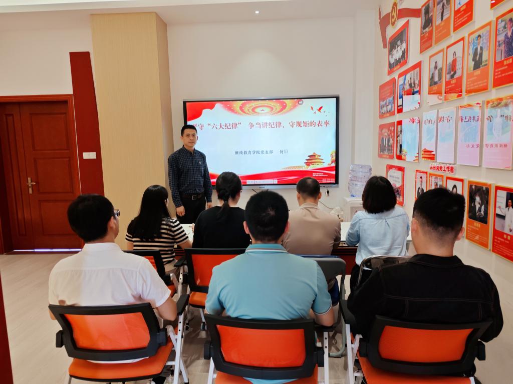 繼續(xù)教育學(xué)院黨支部開展“嚴(yán)守‘六大紀(jì)律’爭當(dāng)守紀(jì)律、講規(guī)矩的表率”黨紀(jì)學(xué)習(xí)教育專題黨課學(xué)習(xí)活動