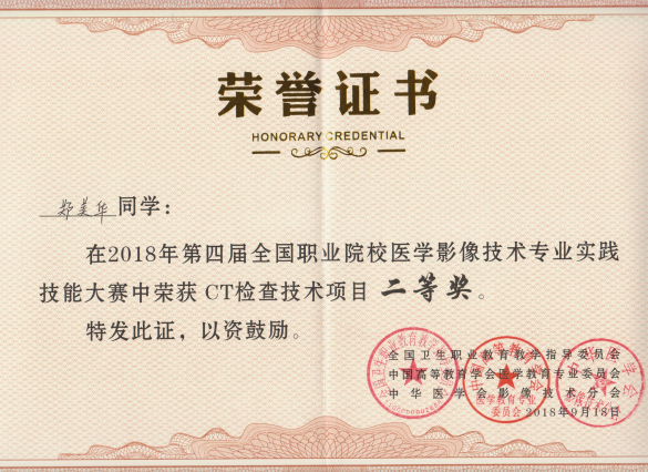 通過校內(nèi)遴選,選出2016級醫(yī)學(xué)影像技術(shù)專業(yè)陳燕慧、鄭美華、游雅淑和揭絲絲4位同學(xué)組隊代表學(xué)院參加比賽。經(jīng)過翁繩和、黃蘭珠、曾良成、吳清清等老師的悉心指導(dǎo),同學(xué)們在翁繩和主任領(lǐng)隊下,不畏強手,操作規(guī)范,取得團體三等獎。其中,鄭美華同學(xué)獲CT檢查技術(shù)單項二等獎,游雅淑同學(xué)獲醫(yī)學(xué)影像診斷單項三等獎,揭絲絲同學(xué)獲超聲檢查技術(shù)單項三等獎。