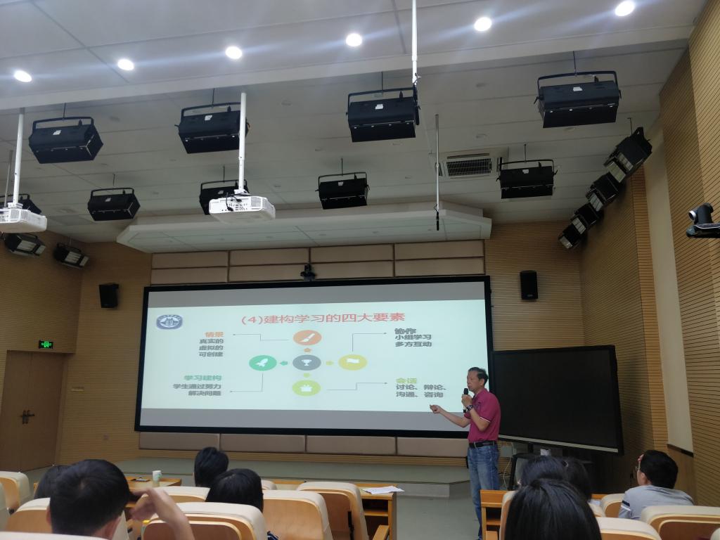 沈教授結合自身多年從事教育事業(yè)以及信息化教學的經驗,從“傳統(tǒng)教師與現代教師的區(qū)別”、“建構主義的觀念”、“如何使用信息化方法解決教學中遇到的問題”等方面進行了生動、詳實的講演,并對2019年參加省教學能力大賽選手提出了如“教學設計過程應該教學教法有依據、有程序、能定量、能獲取、理論聯系實際”等寶貴的指導意見。