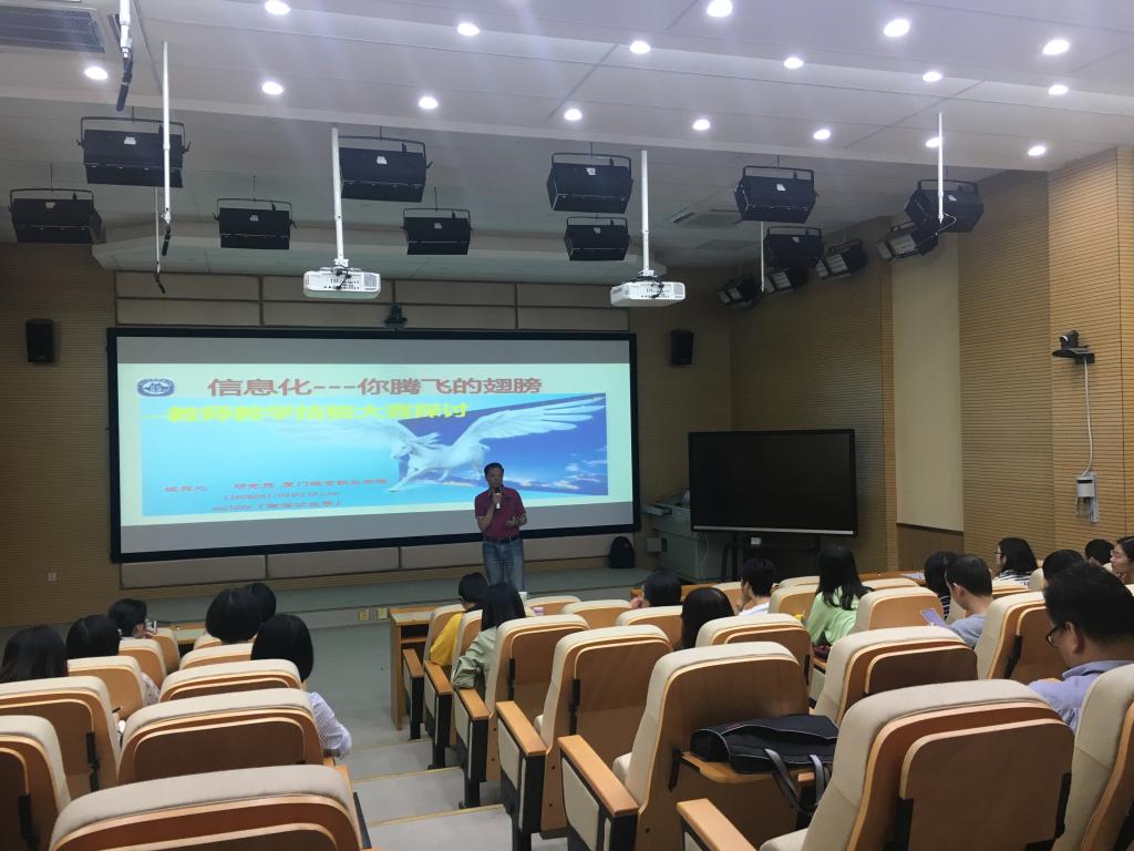為了提升學院老師的教學能力,更新教育理念,優(yōu)化教學策略,2019年5月27日上午8點10分,教務處在學院新實訓大樓三樓錄播室舉辦《更新教育理念,優(yōu)化教學策略——信息化,你騰飛的翅膀》講座。主講人沈立心研究員,為廈門城市職業(yè)學院副院長、中國職教學會信息化委員會常務副主任、中國教育學會高職高專委員會副主任、教育部裝備委員會特聘專家。參加講座人員包括2019年參加福建省教學能力大賽的選手以及全體教師。