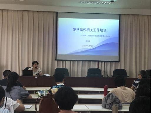 隨后,朱扶蓉處長(zhǎng)分別從學(xué)生錯(cuò)峰返校及教學(xué)安排、分批次返校教室安排、復(fù)課證明查驗(yàn)制度、課堂突發(fā)情況處置、疫情防控期間實(shí)訓(xùn)室管理等五個(gè)方面進(jìn)行了詳細(xì)的講解與培訓(xùn),強(qiáng)調(diào)各位教師、實(shí)驗(yàn)技術(shù)人員及教學(xué)管理人員根據(jù)疫情防控要求,遇到突發(fā)事件時(shí)主動(dòng)報(bào)告,按處置流程規(guī)范處理,相關(guān)部門及時(shí)做好后續(xù)消殺工作。