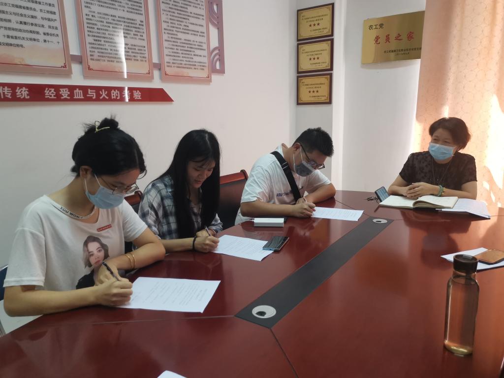 教務處處長朱扶蓉對新進教職工進行吸煙有害健康的科學知識和國家對控煙工作有關(guān)的法規(guī)的宣傳教育,隨后組織宣誓并現(xiàn)場簽訂“教職工禁煙承諾書”。