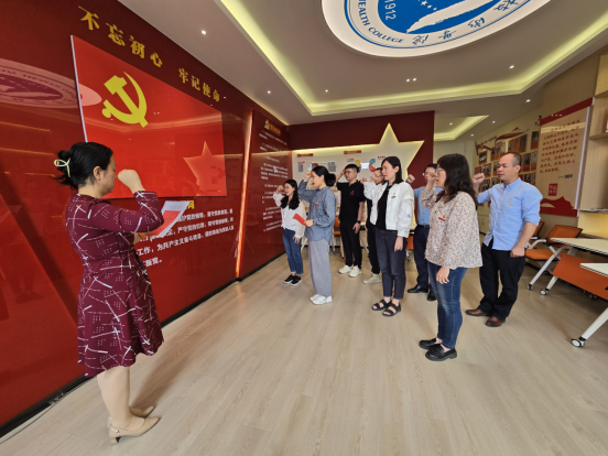 宣誓儀式在莊嚴(yán)的國(guó)際歌中拉開帷幕。在李淼淼書記的領(lǐng)誓下,新黨員面對(duì)黨旗莊嚴(yán)宣誓,老黨員重溫入黨誓詞。隨后,孫錦彬發(fā)言,表示自己要恪守在黨旗下的承諾,始終以一個(gè)合格黨員的標(biāo)準(zhǔn)嚴(yán)格要求自己,不斷提升思想政治素養(yǎng),發(fā)揮黨員先鋒模范作用,積極向優(yōu)秀共產(chǎn)黨員靠攏。最后,李淼淼書記對(duì)新黨員送上祝福和期望,希望新黨員在工作崗位上牢記自己作為黨員的責(zé)任,加強(qiáng)理論知識(shí)學(xué)習(xí),提高個(gè)人的黨性修養(yǎng),做一個(gè)有理想有抱負(fù)的共產(chǎn)黨員。
