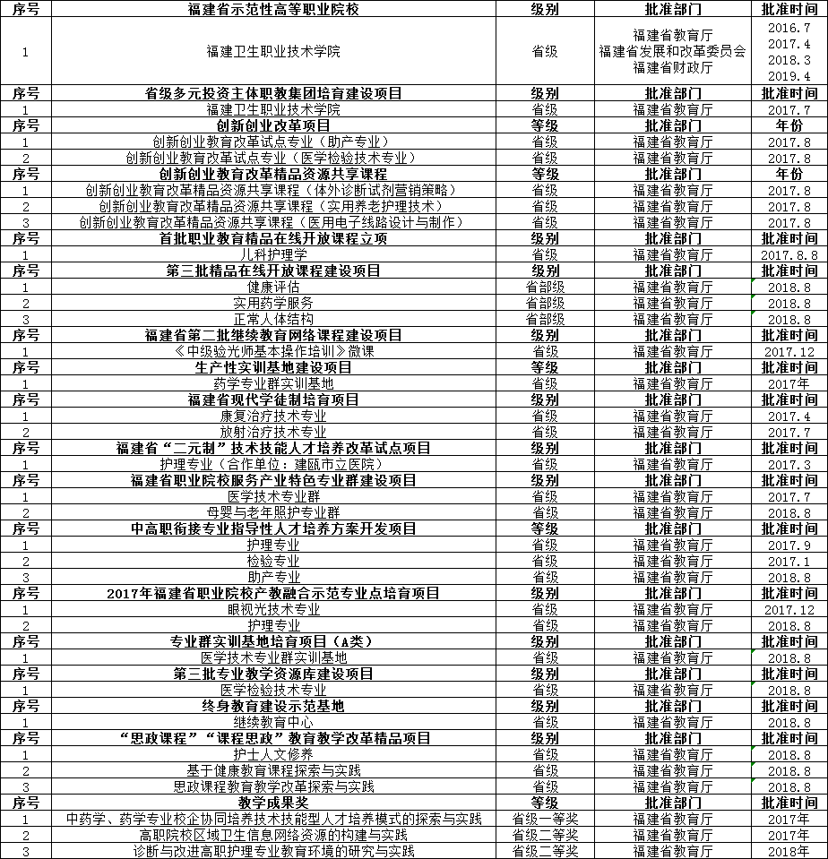 福建衛(wèi)生職業(yè)技術(shù)學(xué)院教學(xué)質(zhì)量與教學(xué)改革工程建設(shè)項目成果一覽表(統(tǒng)計時間為2017年1月-2020年6月)
