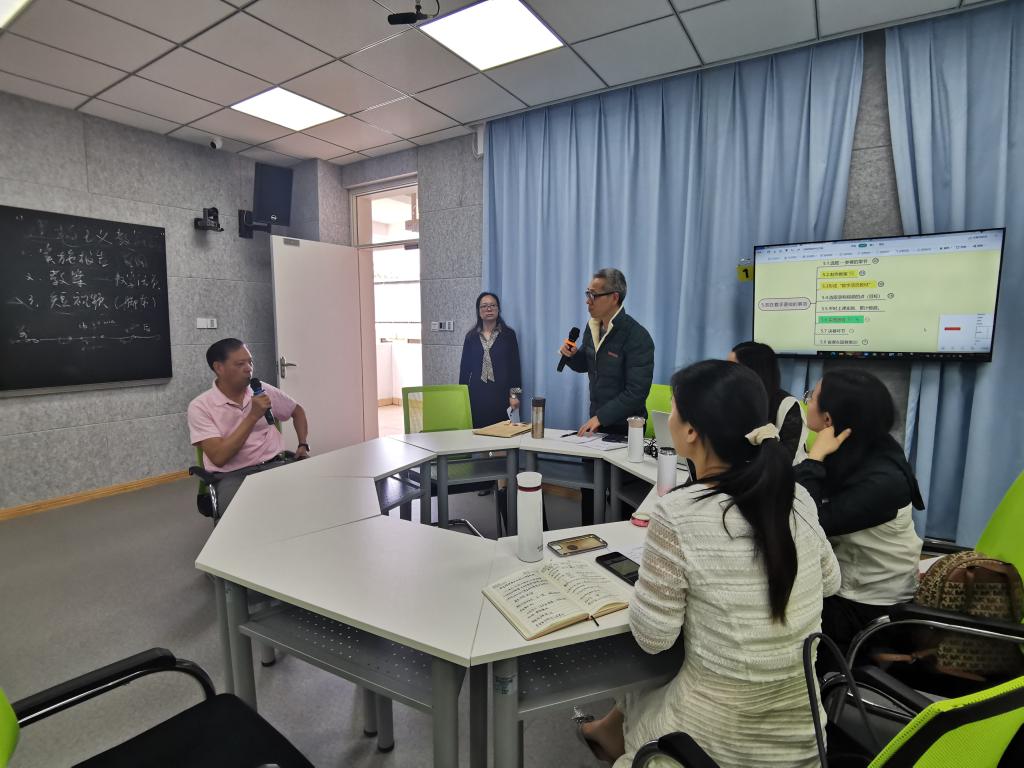 沈立心首先采用思維導圖的形式對大家進行了集中輔導,分別從選題、制作教案、拍攝視頻、撰寫實施報告等方面進行了全面指導。他強調(diào):比賽與教學其實是互相促進的過程,教學比賽體現(xiàn)的不僅是為了比賽而進行的“突擊式”準備,更多的還是教師日常教學的積淀,因此教師在平時的教學中也要注重教學平臺的搭建及教學數(shù)據(jù)的累積。