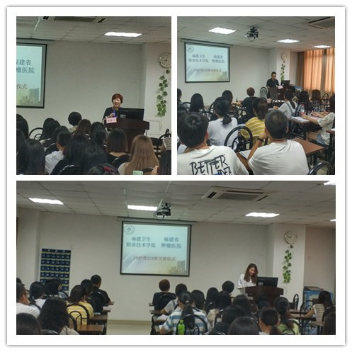 2019年9月2日上午8點30分,在福建省腫瘤醫(yī)院新綜合樓三樓示教室,福建衛(wèi)生職業(yè)技術學院聯(lián)合福建省腫瘤醫(yī)院舉行了2018級校企合作護理班開班儀式。出席開班儀式的校方代表有護理系林桂松副書記、輔導員吳薇老師,院方代表有福建省腫瘤醫(yī)院護理部駱惠玉主任、吳美華副主任、班主任鐘玲老師及各位課程負責人等,46名腫瘤班學生一起參加了開班儀式。