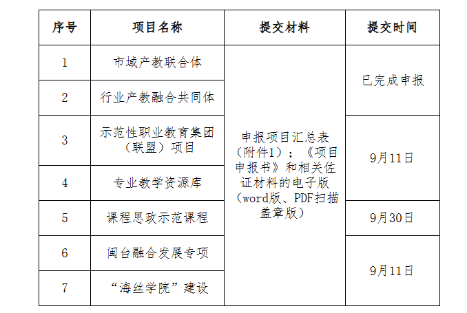 為推進(jìn)學(xué)校全面深化產(chǎn)教融合項(xiàng)目建設(shè),根據(jù)《福建省教育廳關(guān)于開展2024年省級職業(yè)教育重點(diǎn)建設(shè)項(xiàng)目申報(bào)和驗(yàn)收工作的通知》(閩教職成〔2024〕15號)要求,請各學(xué)院(部)結(jié)合自身專業(yè)和項(xiàng)目建設(shè)優(yōu)勢,積極申報(bào)2024年省級職業(yè)教育重點(diǎn)建設(shè)項(xiàng)目,同時(shí)文件中要求驗(yàn)收的項(xiàng)目請相關(guān)學(xué)院(部)認(rèn)真研讀文件并做好驗(yàn)收準(zhǔn)備。
