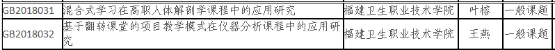 近日,接《關(guān)于公布2018年福建省職業(yè)技術(shù)教育中心職業(yè)教育教學改革研究課題立項結(jié)果的通知》,我院葉榕老師申報的課題“混合式學習在高職人體解剖學課程中的應(yīng)用研究”和王燕老師申報的課題“基于翻轉(zhuǎn)課堂的項目教學模式在儀器分析課程中的應(yīng)用研究”獲批立項。