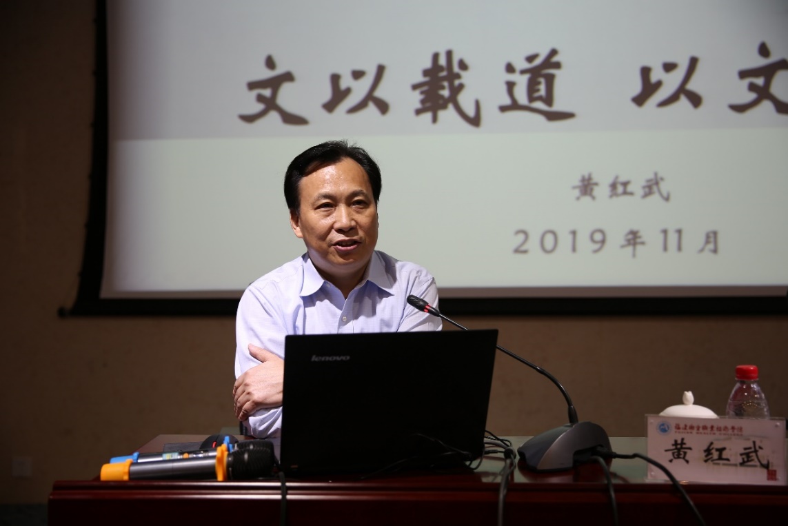黃紅武教授的講座案例鮮活、語言生動、娓娓道來,讓我們深刻地認(rèn)識到“文”何以能“載道”,“文”如何能“化人”,增強(qiáng)了我們的文化自信和文化自覺。