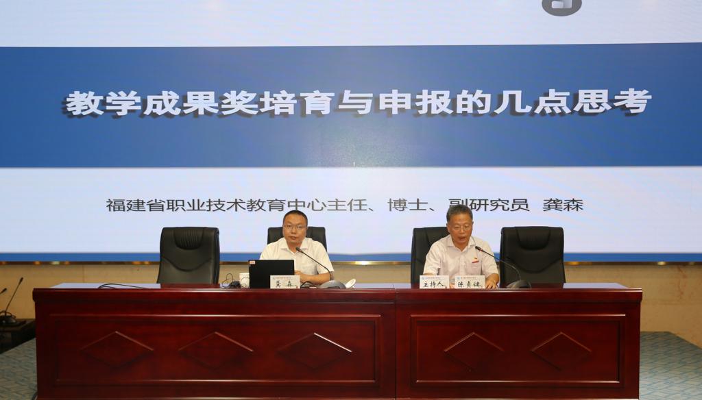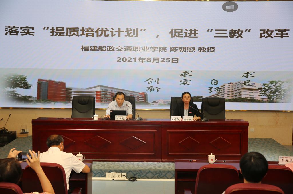 本次研討會邀請廈門城市職業(yè)學院院長唐寧研究員、福建省職業(yè)技術(shù)教育中心主任龔森副研究員、福建船政交通職業(yè)學院教務處處長陳朝慰教授來校講座。