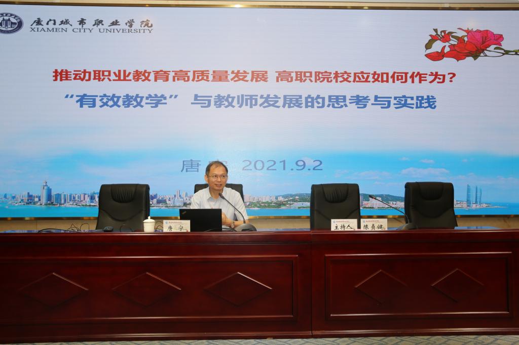 唐寧研究員以《實施有效教學 建設高水平教學團隊》為題,以國家相關(guān)政策文件為切入點,從參與高質(zhì)量職教體系建設、建設高水平院校和專業(yè)群、提高課程教學質(zhì)量與實效三方面分享自己的思考和體會,并介紹了廈門城市職業(yè)學院在探索實踐中的先進經(jīng)驗和做法。