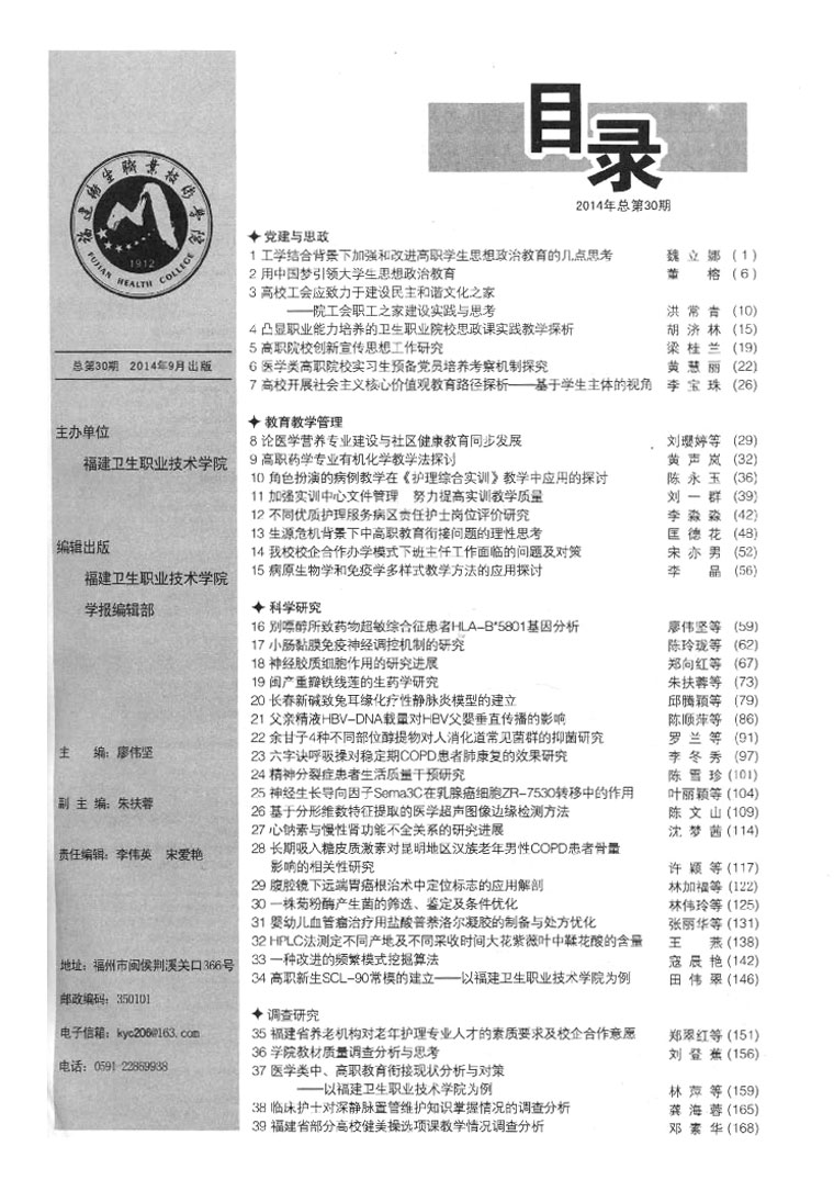 福建衛(wèi)生職業(yè)技術(shù)學(xué)院學(xué)報(bào)2014年總第三十期 目錄