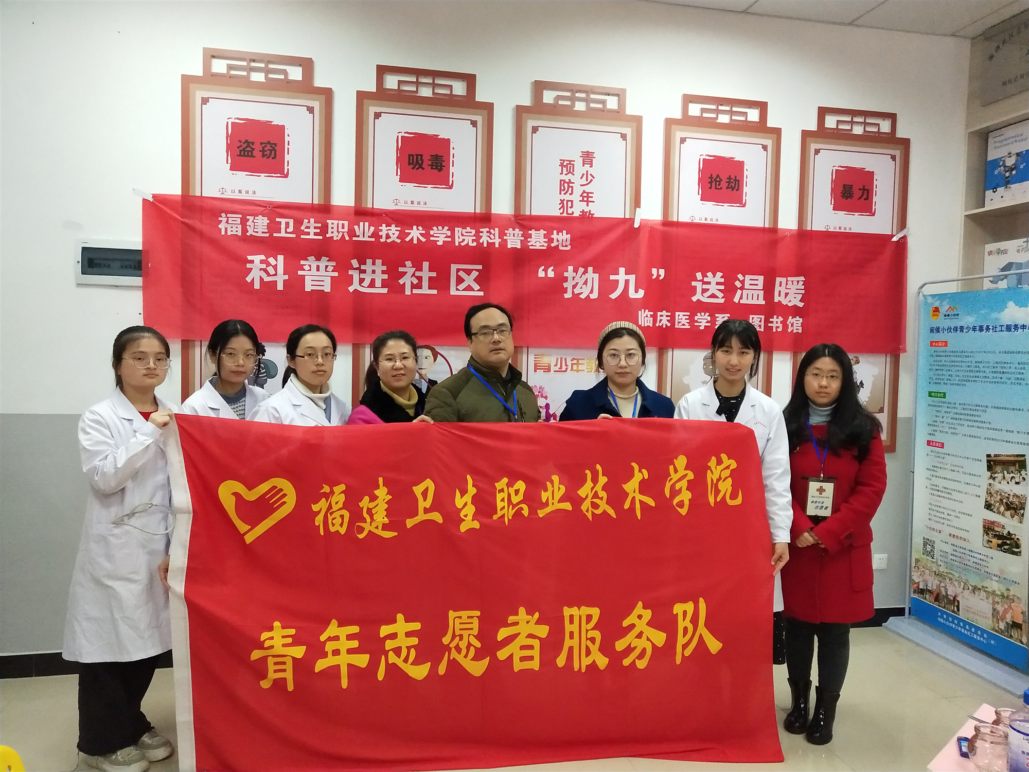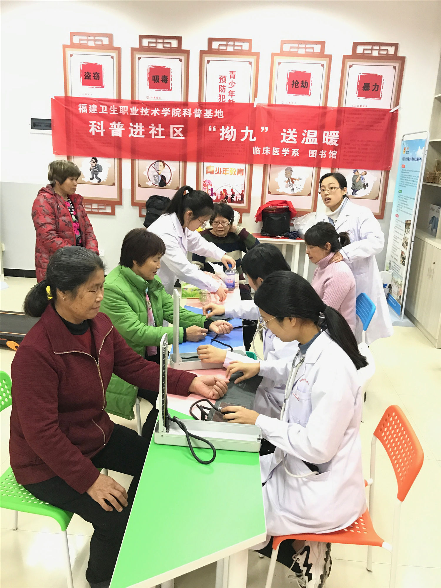 2019年3月5日,在我國(guó)傳統(tǒng)節(jié)日“拗九節(jié)”來臨之際,我院臨床醫(yī)學(xué)系和圖書館攜手閩侯縣科協(xié)一起到閩侯縣瀛洲社區(qū),開展“科普進(jìn)社區(qū),‘拗九’送溫暖”學(xué)雷鋒志愿服務(wù)活動(dòng)。