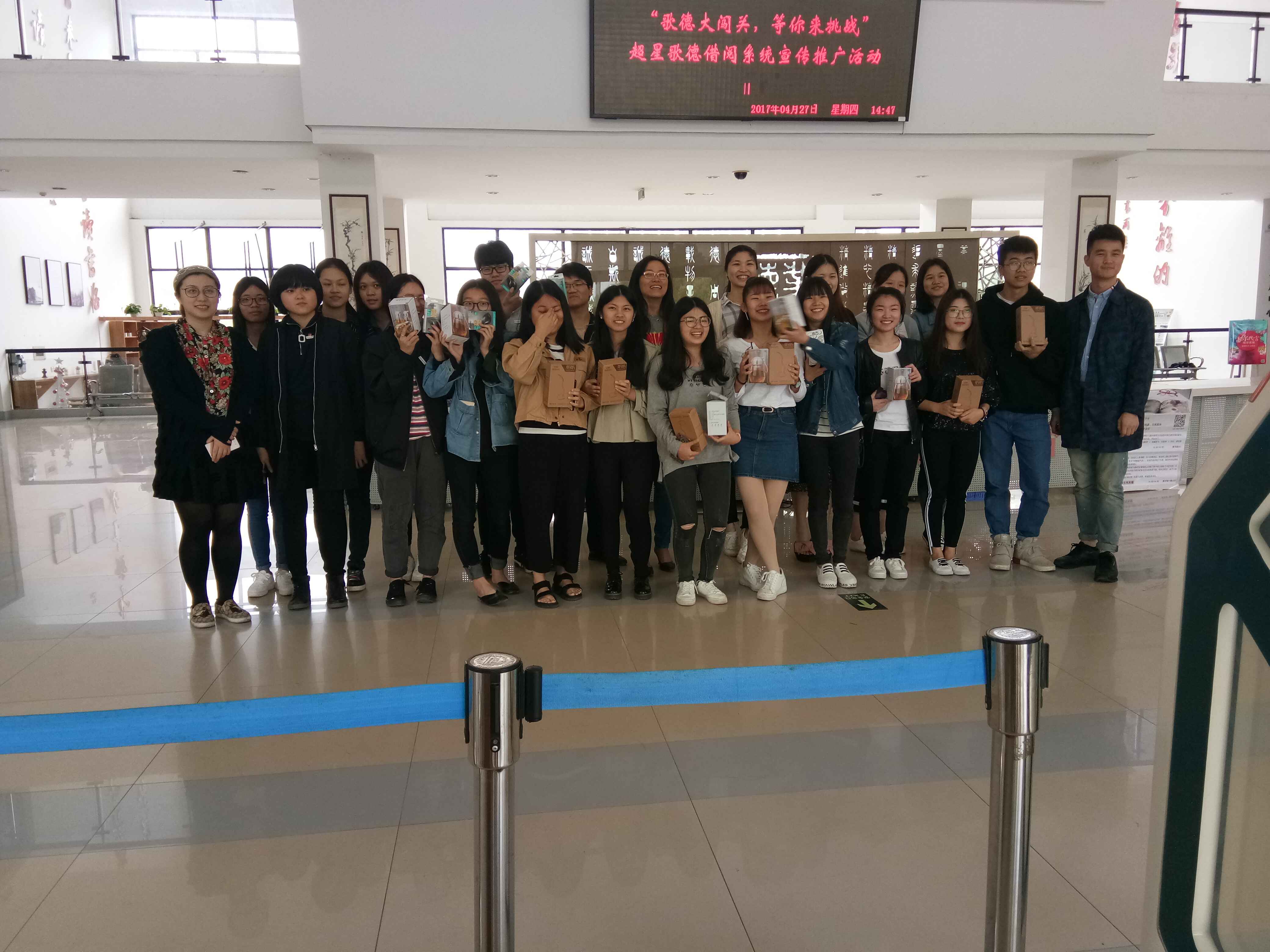 2017年4月27日下午,圖書館在一樓大廳舉辦了世界閱讀日系列活動之“歌德大闖關 等你來挑戰(zhàn)”歌德借閱系統(tǒng)宣傳推廣活動,60余名讀者在現(xiàn)場參加了活動。