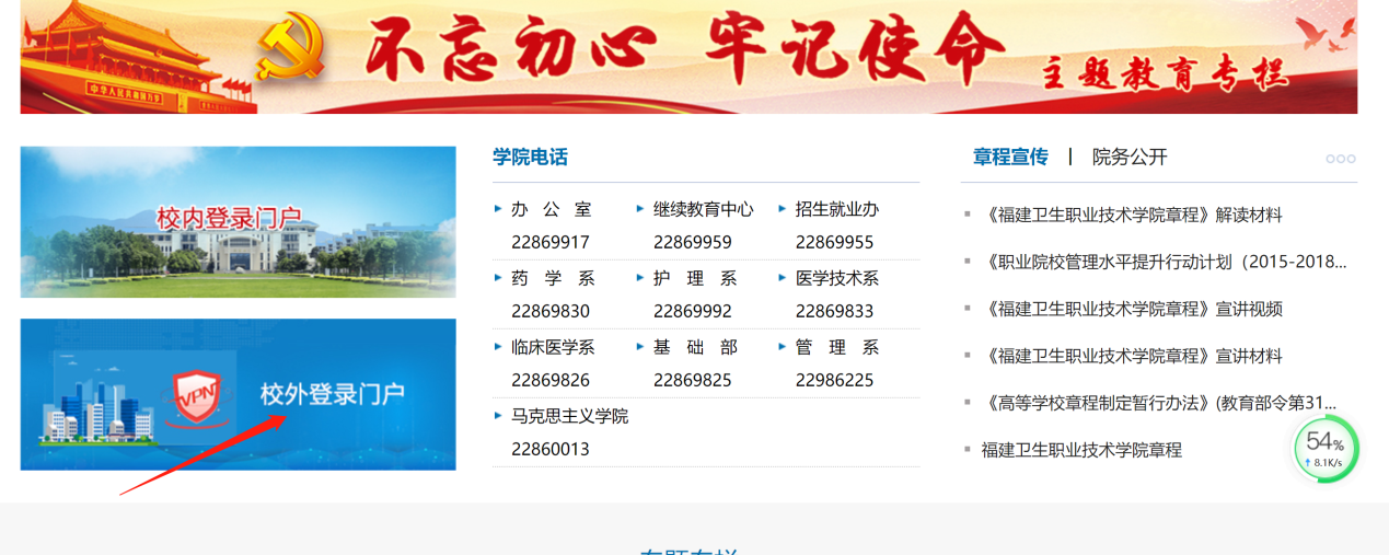 打開瀏覽器,輸入網(wǎng)址:www.fjwx.com.cn/,進入首頁,點擊“校外登錄門戶”