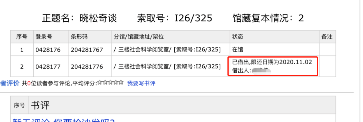 7、圖書如已借出,在書名詳情頁會顯示相關(guān)信息。