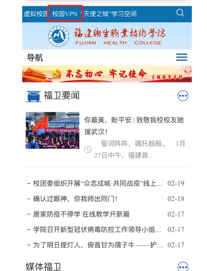 打開手機瀏覽器,輸入網(wǎng)址:www.fjwx.com.cn,點擊“校園VPN”