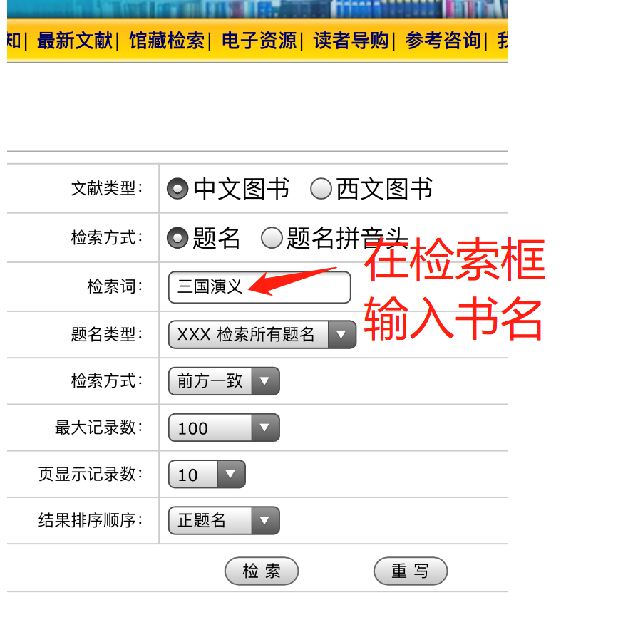 讀者在校內(nèi)、校外均可檢索館藏紙質(zhì)圖書,具體步驟如下: