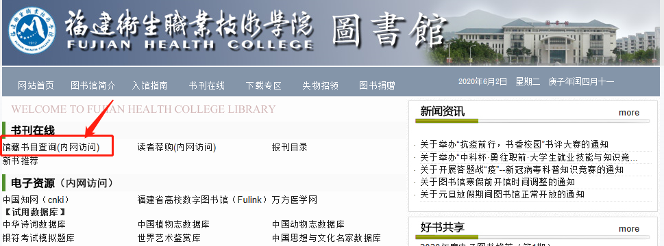 以下兩種途徑均可進入圖書館檢索頁面,檢索步驟同“校外檢索”。