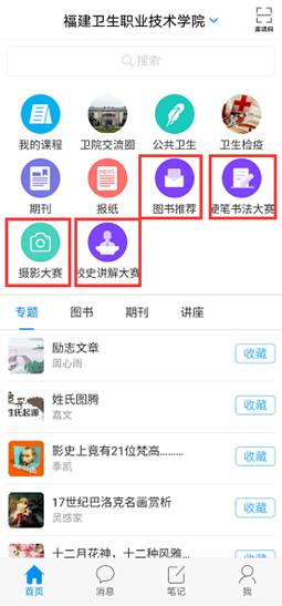 分別點擊首頁“圖書薦讀”、“硬筆書法大賽”、“攝影大賽”、“校史講解大賽”模塊即可進入各項活動入口。請根據(jù)要求正確填寫表單信息,并提交。