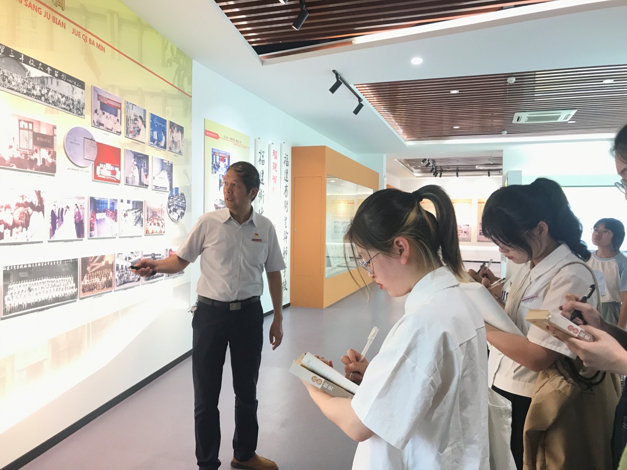學(xué)生講解員認(rèn)真聆聽并記筆記