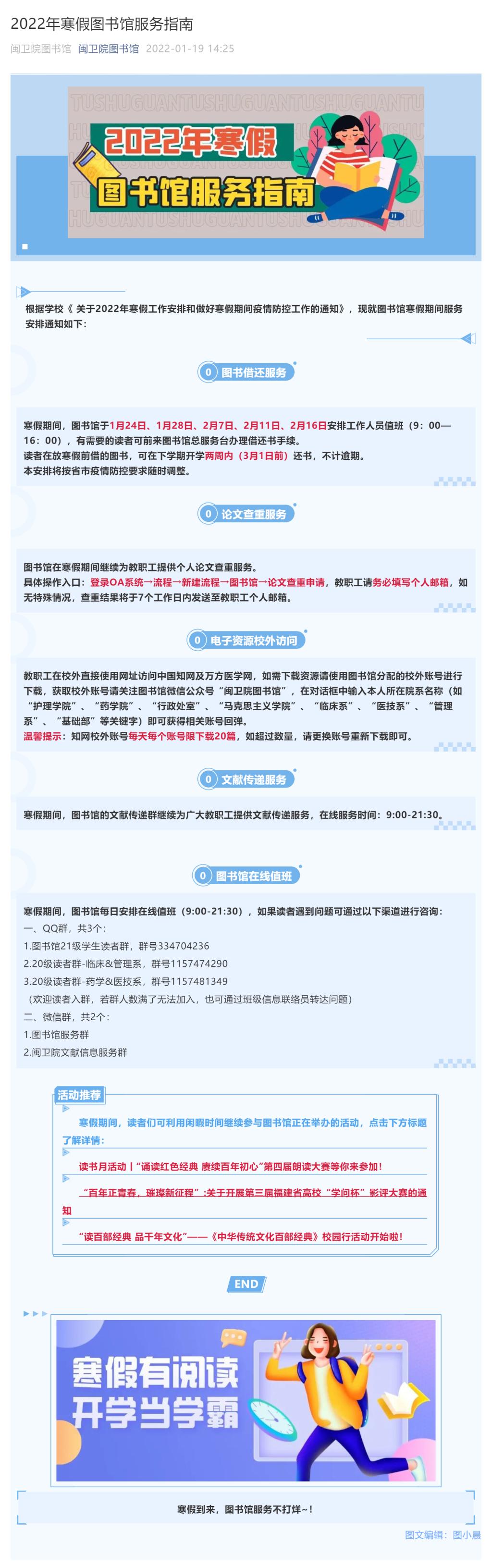 2022年寒假圖書館服務(wù)指南