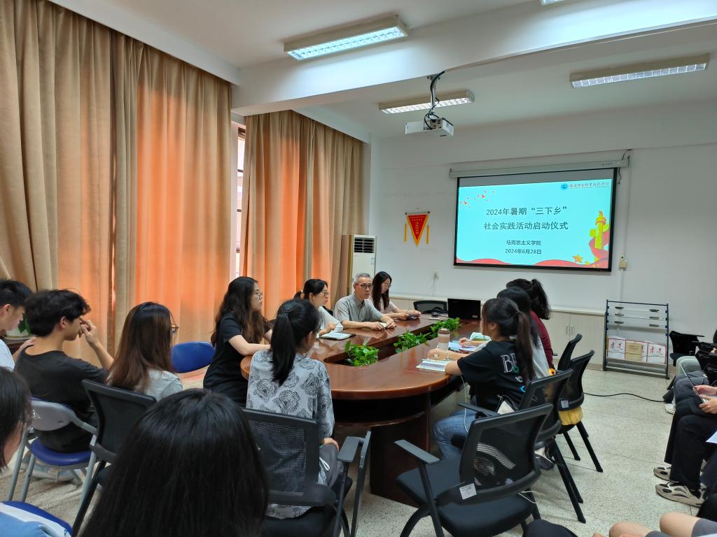 為深入學(xué)習(xí)貫徹黨的二十大精神,引導(dǎo)廣大青年學(xué)子在社會(huì)實(shí)踐中增強(qiáng)責(zé)任感和使命感,馬克思主義學(xué)院組建“馬上逐夢(mèng)”實(shí)踐隊(duì)赴龍巖永定下洋鎮(zhèn)中川村開展2024年大學(xué)生暑期“三下鄉(xiāng)”社會(huì)實(shí)踐活動(dòng)。臨行前,指導(dǎo)老師及全體隊(duì)員在厚德樓107召開啟動(dòng)儀式,馬克思主義學(xué)院黨總支賴文金副書記囑咐同學(xué)們要利用本次“三下鄉(xiāng)”社會(huì)實(shí)踐活動(dòng),深入僑鄉(xiāng)、了解僑史、感悟民族精神、堅(jiān)定理想信念。