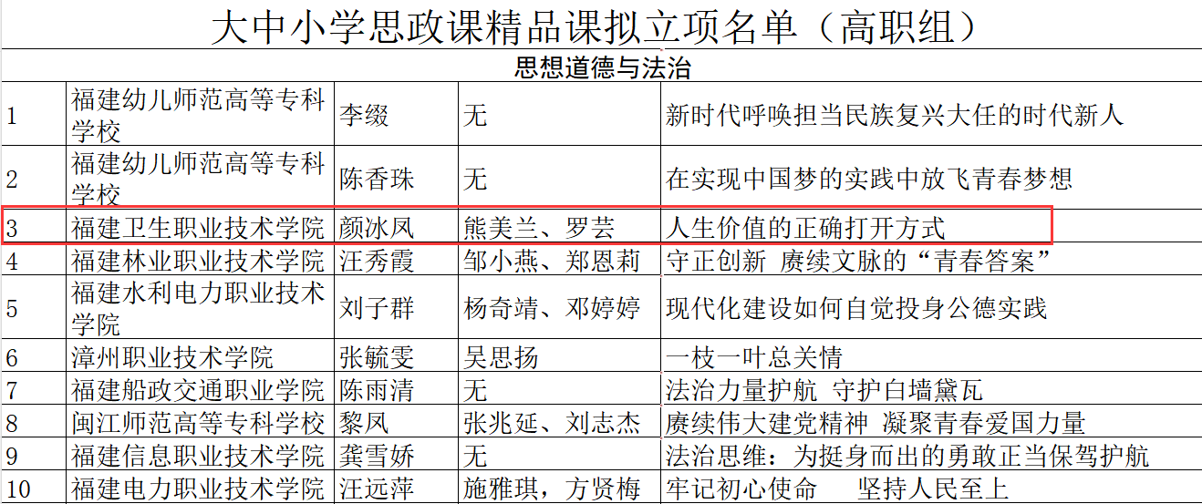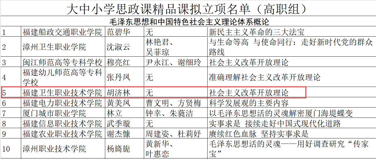 近日,福建省教育廳公示2024年大中小學(xué)思政課精品課擬立項(xiàng)名單,我校馬克思主義學(xué)院推薦的4項(xiàng)教學(xué)設(shè)計(jì)均入選立項(xiàng)名單。