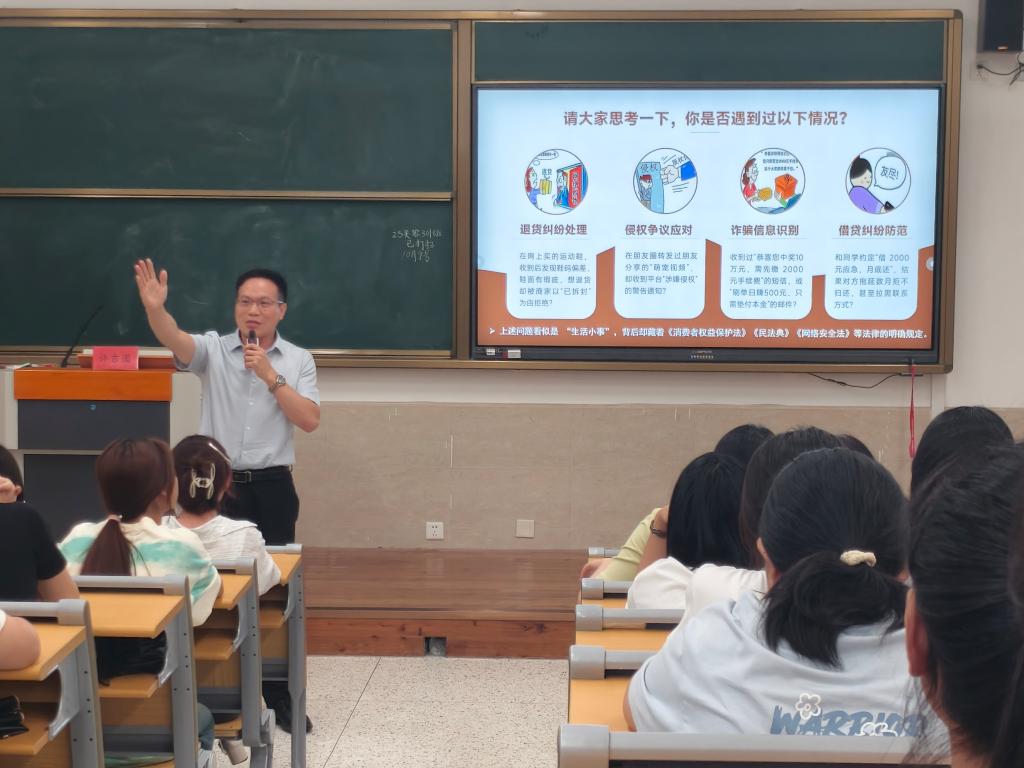 講座中,許吉團(tuán)教授借助真實(shí)案例,深入剖析了數(shù)字消費(fèi)、網(wǎng)絡(luò)行為、兼職租房、人際交往與情感關(guān)系等熱點(diǎn)領(lǐng)域的法律問題,系統(tǒng)揭示了大學(xué)生活中潛在的法律風(fēng)險(xiǎn)。他將晦澀的法條轉(zhuǎn)化為生動的警示,最終凝練出“證據(jù)意識、書面優(yōu)先、求助意識”三大黃金法則,為學(xué)生提供了一套清晰且實(shí)用的自我保護(hù)指南。
