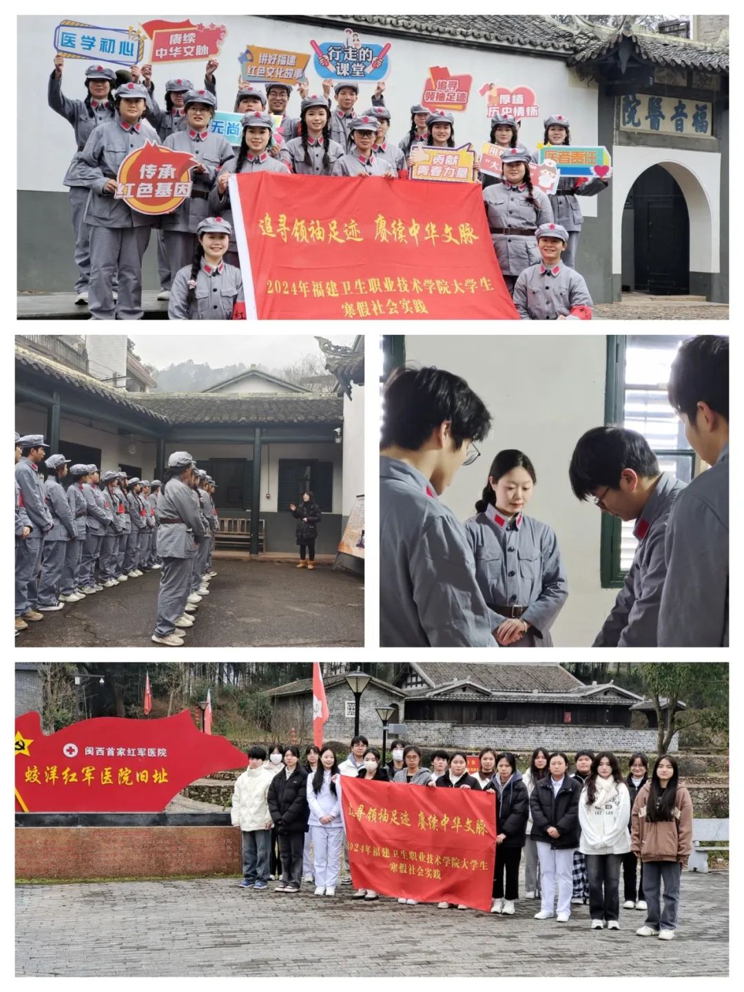 為深入學習貫徹習近平文化思想,講好用好新時代“大思政課”,深入實施“時代新人鑄魂工程”,2024年1月25日至29日,我校馬克思主義學院聯(lián)合校團委組建醫(yī)脈相承實踐隊,從校史館出發(fā)前往福音醫(yī)院、蛟洋紅軍醫(yī)院舊址、長汀縣博物館、古田會議紀念館、中央蘇區(qū)(閩西)歷史博物館、吳孟超院士先進事跡展示館、福建醫(yī)科大學抗疫主題館等地開展寒假主題社會實踐活動。此次社會實踐活動,秉承“尋訪·傳承·踐行”的理序,以追尋紅醫(yī)足跡為主線,依托我?!按笏颊n”實踐教學基地,以“行走的思政課”為實踐形式,挖掘紅色精神富礦,探源偉大紅醫(yī)精神,是紅色文化建設(shè)與紅醫(yī)精神教育的有益探索。