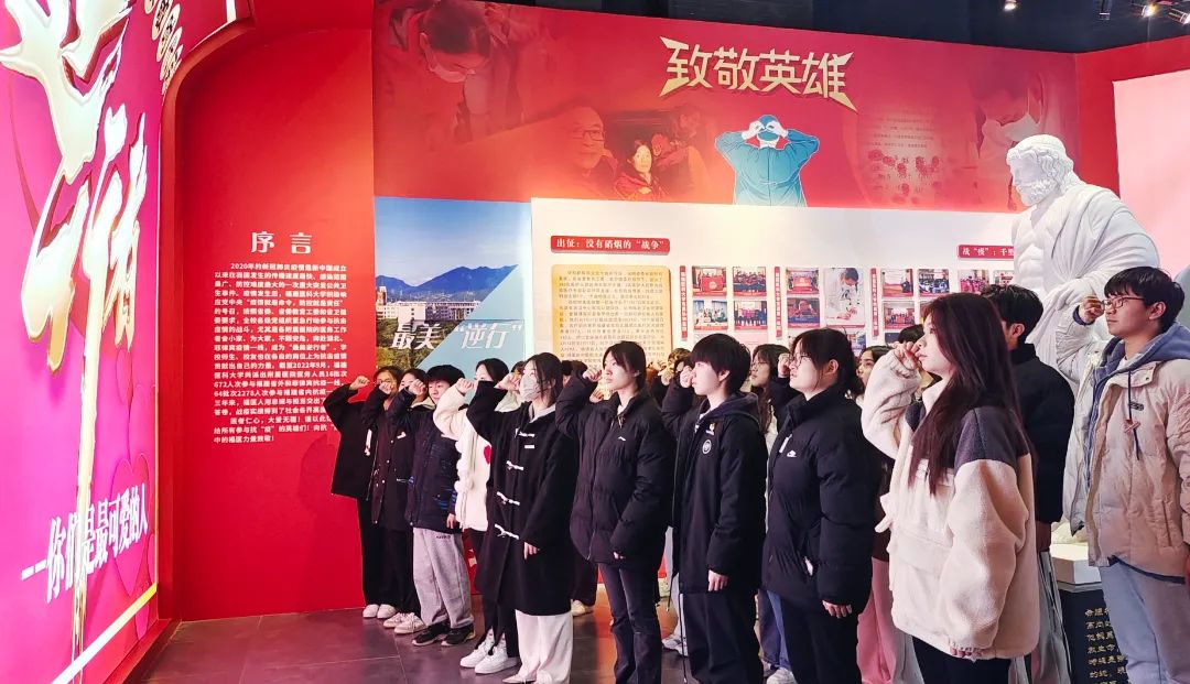 福建是革命老區(qū),黨史事件多、紅色資源多、革命先輩多。在當代,福建的紅色基因如何凸顯?實踐隊參觀了吳孟超院士先進事跡展示館和福建醫(yī)科大學抗疫主題館。馬克思主義學院院長熊美蘭結(jié)合“星耀霄漢 感動中國”“追求理想 赤心報國”“游刃肝膽 振興中華”“星火傳承 英才輩出”等展廳模塊主題,生動講述“肝膽外科之父”從童年到回國、從醫(yī)、參軍、入黨、成長、奮斗的人生歷程。吳孟超“愛黨愛國愛民”的赤子情懷、為國勇攀醫(yī)學高峰的崇高氣節(jié)和“一切為了人民健康”的高尚醫(yī)德醫(yī)風深深打動在場師生。在福建醫(yī)科大學抗疫主題館,珍貴的圖像記錄、實物、詩文畫作生動展現(xiàn)了真實感人的福建抗疫故事。隊員們重溫醫(yī)學生誓詞,表示將不忘醫(yī)者初心,牢記健康使命。