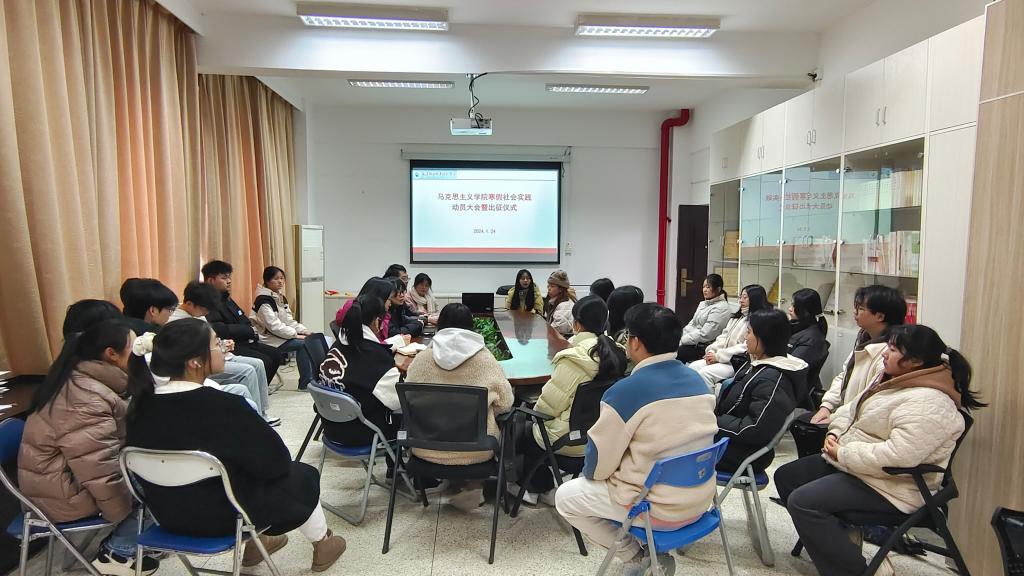 為確?;顒禹樌⒂行ч_展,2024年1月24日,實踐隊召開行前動員大會。馬克思主義學(xué)院院長熊美蘭,顏冰鳳、江洪、龍慧等指導(dǎo)老師及全體隊員參加了此次大會。熊美蘭作動員講話,強調(diào)開展此次活動的重要意義。會議還強調(diào)了此次實踐活動的主題、內(nèi)容、任務(wù)分組、紀律要求、注意事項等,深化實踐隊對此次實踐活動的認識,提高了隊員們參與活動的熱情和積極性。