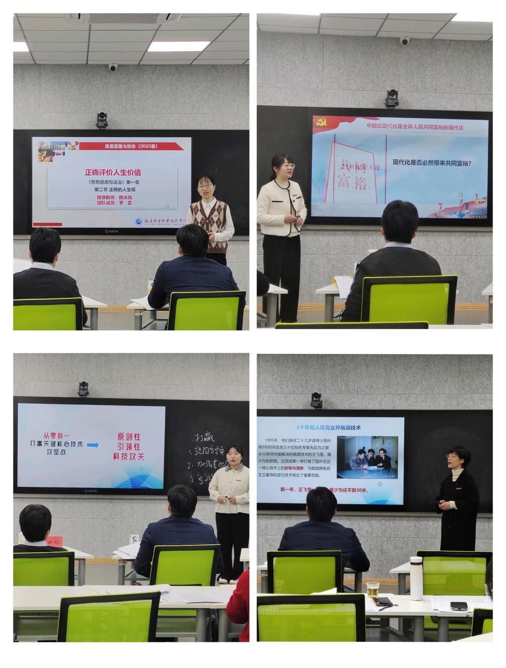 參賽教師從“習(xí)近平新時(shí)代中國特色社會(huì)主義思想概論”“毛澤東思想和中國特色社會(huì)主義理論體系概論”“思想道德與法治” “形勢與政策”等思政課程中自選一個(gè)專題進(jìn)行教學(xué)設(shè)計(jì)、文本撰寫和15分鐘現(xiàn)場教學(xué)展示。參賽教師聚焦學(xué)生學(xué)情,緊扣教學(xué)重難點(diǎn),善用“大思政課”,用生動(dòng)的故事、鮮活的案例、嚴(yán)謹(jǐn)?shù)倪壿嫛⒘鲿车恼Z言,將道理講深講透講活,充分展示我校思政課教師良好的教學(xué)功底、專業(yè)知識(shí)和精神風(fēng)貌。