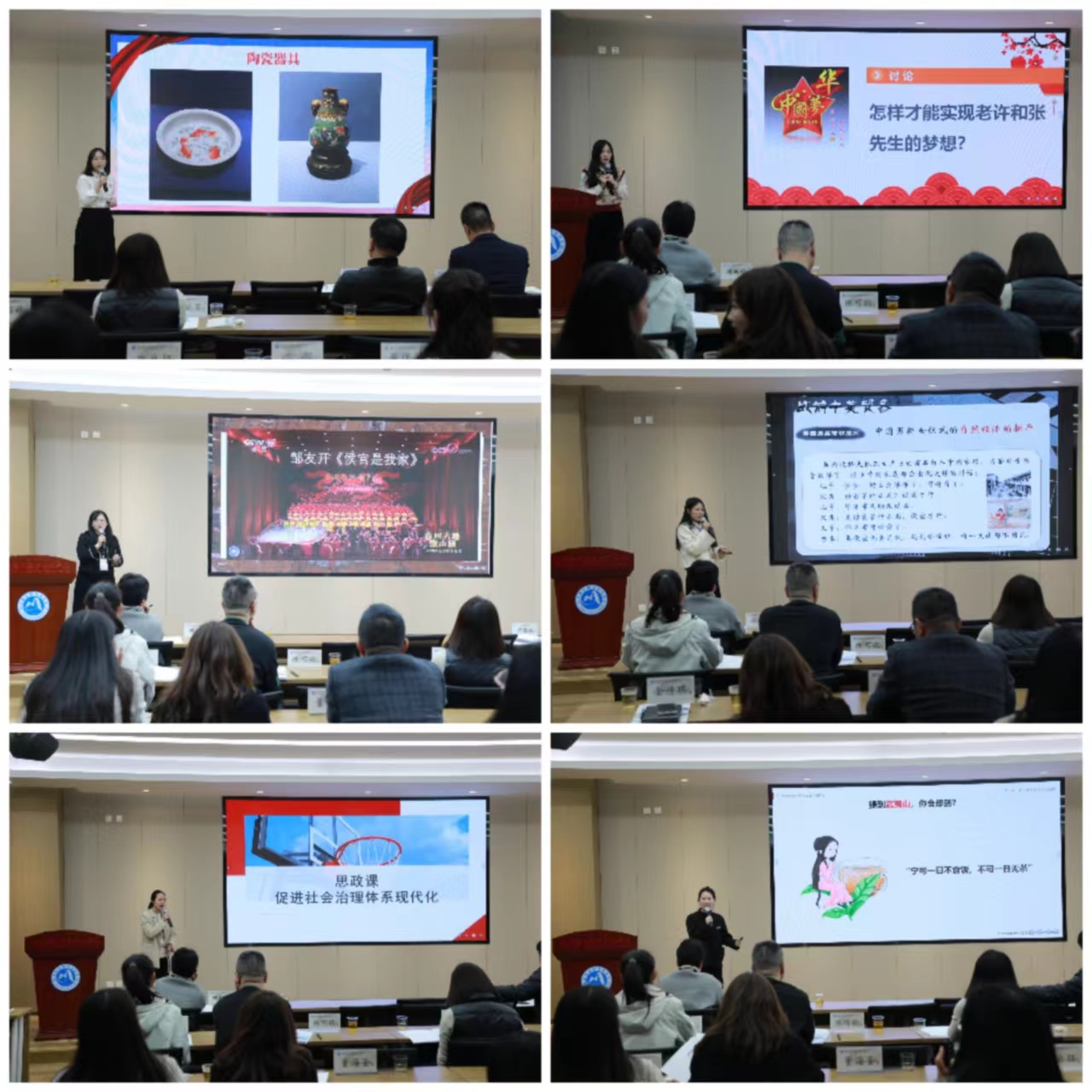 閩侯荊溪關(guān)源小學(xué)邱娜娜、閩侯荊溪龍山小學(xué)陳冠霆、閩侯縣教師進(jìn)修學(xué)校附屬中學(xué)麥婷、閩侯荊溪中學(xué)金詩琪、閩侯縣職業(yè)中專學(xué)校李倩云、福建衛(wèi)職院徐舒寧等老師分別作題為《堅(jiān)定文化自信》《走進(jìn)新時代 共享中國夢》《弘揚(yáng)侯官文化 堅(jiān)定文化自信》《鴉片走私與林則徐禁煙》《思政課促進(jìn)社會治理體系現(xiàn)代化》《鑄就文化自信新輝煌——續(xù)一盞茶香 敘文化輝煌》的教學(xué)展示。閩侯荊溪關(guān)口小學(xué)林夏如、閩侯荊溪中學(xué)吳倩倩、福建衛(wèi)職院胡濟(jì)林等老師圍繞“習(xí)近平文化思想與福建特色文化融入思政課”主題,分別以《心有所信 方能行遠(yuǎn)》《弘學(xué)養(yǎng)正 德潤未來》《閩都文化的形成發(fā)展及其特色》為題作研究成果的分享交流。