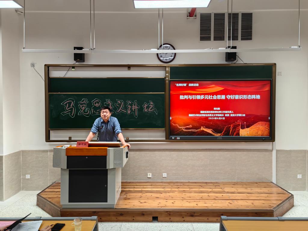 為幫助我校師生深刻領(lǐng)悟習(xí)近平文化思想的核心要義、精神實質(zhì)、豐富內(nèi)涵和實踐要求,站在黨和國家事業(yè)全局高度,堅定不移維護(hù)意識形態(tài)安全,應(yīng)對錯誤社會思潮,2024年6月6日,我校邀請福建藝術(shù)職業(yè)學(xué)院馬克思主義學(xué)院院長鄭元凱教授進(jìn)行"名師好課送教"活動,在崇健樓202開展《批判與引領(lǐng)多元社會思潮 守好意識形態(tài)陣地》專題講座。講座由馬克思主義學(xué)院院長熊美蘭主持,馬克思主義學(xué)院全體專兼課教師、學(xué)生代表參加。