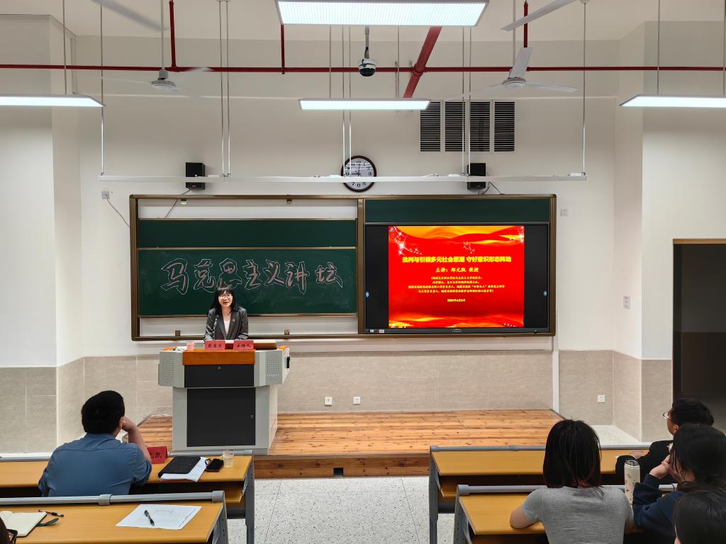 鄭元凱從“什么是意識形態(tài)?”這個基本問題切入,分析了如何從不同社會思潮看當(dāng)前意識形態(tài)領(lǐng)域風(fēng)險,提出應(yīng)當(dāng)加強思想引領(lǐng),應(yīng)對錯誤社會思潮,堅持馬克思主義指導(dǎo)地位,筑牢馬克思主義立場觀點方法。
