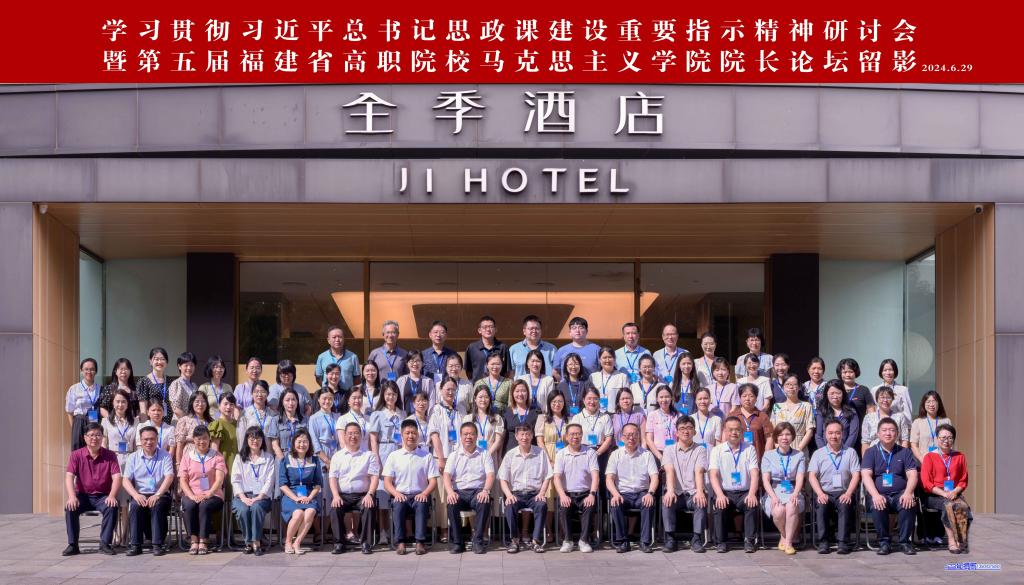2024年6月29日,學習貫徹習近平總書記思政課建設重要指示精神研討會暨第五屆福建省高職高專院校馬克思主義學院院長論壇在福州召開,我校馬克思主義學院院長熊美蘭、思想道德與法治教研室主任顏冰鳳、形勢與政策教研室主任鄭冰與來自全省27所高職院校的馬院院長、思政課骨干教師80余名代表共同參加了會議。