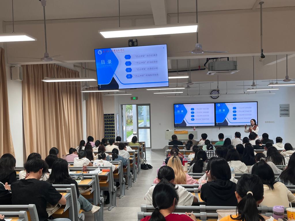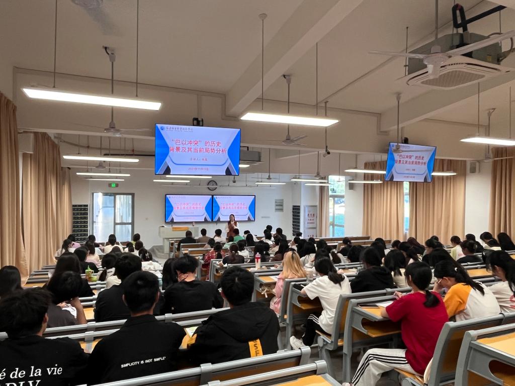 當(dāng)前國際的安全形勢仍然是以和平為主旋律,局部動(dòng)蕩并存,其中在局部戰(zhàn)爭中,新一輪的“巴以沖突”已經(jīng)進(jìn)入第二個(gè)年頭。為了引導(dǎo)學(xué)生正確認(rèn)識當(dāng)前國際安全形勢,特別是從局部的動(dòng)蕩現(xiàn)實(shí)中深刻感悟到我國提倡大國協(xié)商合作,構(gòu)建人類命運(yùn)共同體外交政策和理念的實(shí)質(zhì)與時(shí)代意義。2024年11月15日,楊盈老師在醫(yī)學(xué)院醫(yī)基三階梯教室,為師生代表作題為《“巴以沖突”的歷史背景及其當(dāng)前局勢分析》的專題講座。