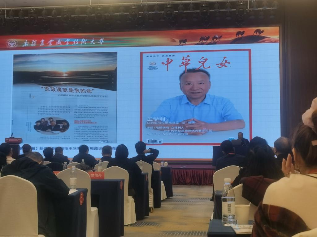 教育部教材局副局長劉宏杰,教育部社科司副司長宋凌云出席會議并講話。會上,新疆農(nóng)業(yè)職業(yè)技術(shù)大學(xué)馬克思主義學(xué)院院長、全國教書育人楷模王學(xué)利作題為“深入學(xué)習(xí)習(xí)近平同志《論教育》的重要論述,發(fā)揮思政引領(lǐng)力推動(dòng)思政課內(nèi)涵式發(fā)展”的學(xué)術(shù)報(bào)告,詳細(xì)介紹了其帶領(lǐng)團(tuán)隊(duì)創(chuàng)新的“案例導(dǎo)引,問題核心,三元融匯,五維協(xié)同”高職思政課問題式專題化教學(xué)模式的探索歷程、理論依據(jù)、基本內(nèi)涵和實(shí)驗(yàn)成效。