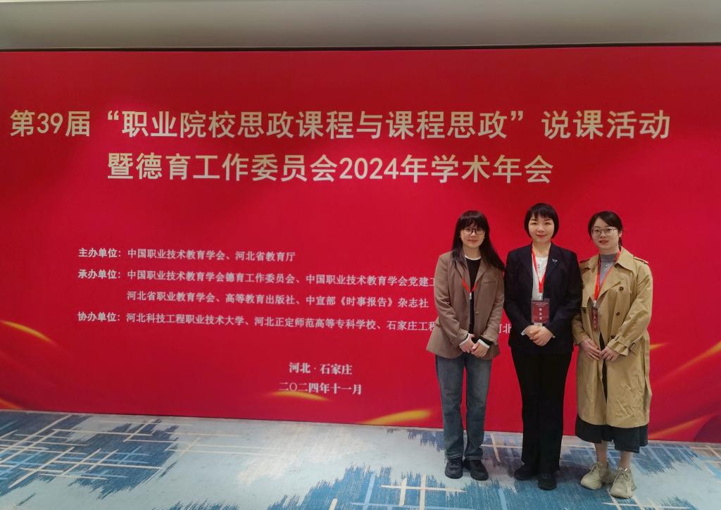 近日,職業(yè)院校思政課程與課程思政說課研討會暨德育工作委員會2024年學(xué)術(shù)年會在石家莊舉辦,中國職業(yè)技術(shù)教育學(xué)會德育工作委員會會員單位代表,全國職業(yè)院校的校級領(lǐng)導(dǎo)、馬院院長、思政課教師以及相關(guān)領(lǐng)域的專家等共計(jì)230余人參加本次活動(dòng)。我校黨委副書記李美華、馬克思主義學(xué)院院長熊美蘭、思政課教師吳薇參加會議。
