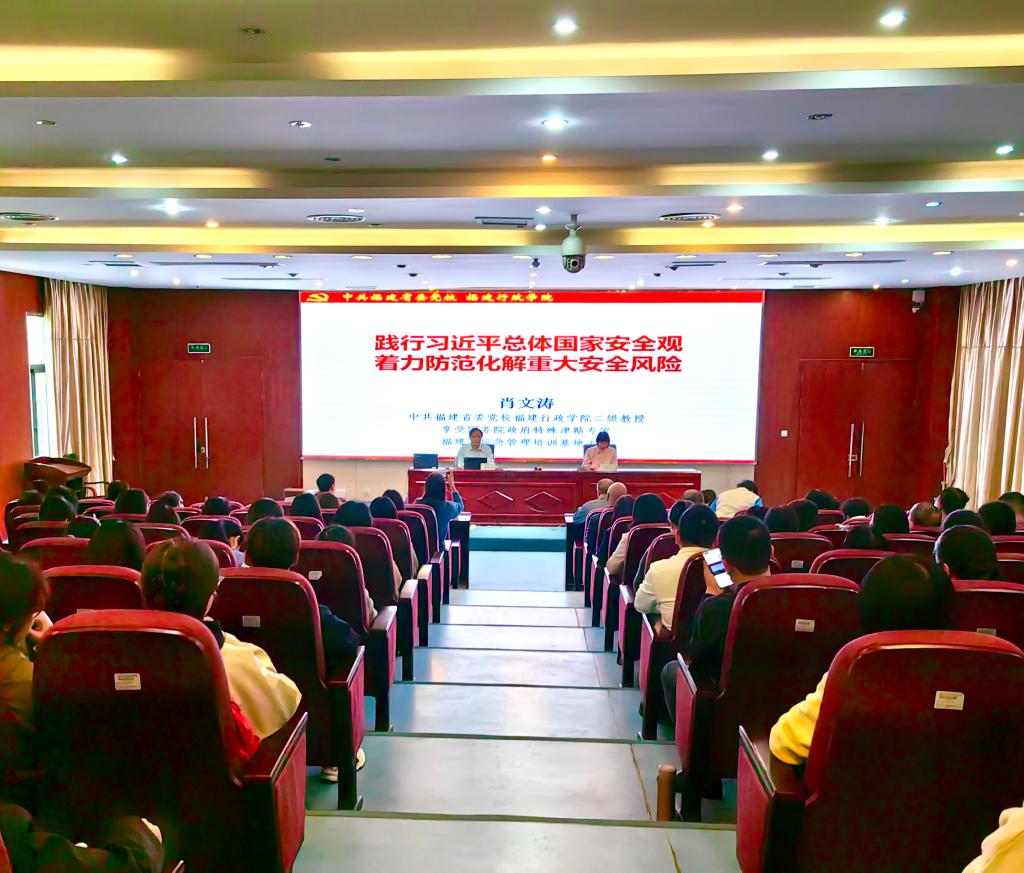 為深入學(xué)習(xí)黨的二十屆三中全會精神,引導(dǎo)我校師生認真學(xué)習(xí)貫徹總體國家安全觀,增強國家安全意識,筑牢維護國家安全的鋼鐵長城,11月21日,我校特邀國務(wù)院政府特殊津貼專家、福建省應(yīng)急管理培訓(xùn)基地主任、中共福建省委黨校福建行政學(xué)院肖文濤教授,作題為《踐行總體國家安全觀 著力防范化解重大安全風險》的專題講座。校領(lǐng)導(dǎo)、管理干部、思政課教師和學(xué)生代表參加。講座由校黨委副書記李美華主持。