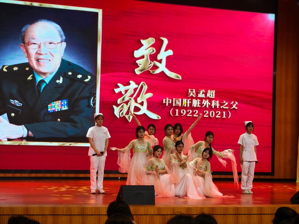 活動現(xiàn)場,主辦方以“紅醫(yī)精神”宣講為抓手,追憶傅連暲、江一真、林巧稚、吳孟超、慕容慎行等“紅醫(yī)”風(fēng)范。在吳孟超院士逝世四周年的特殊日子,通過宣傳片展示、情景朗誦等系列活動深切緬懷吳孟超院士。我校學(xué)生代表現(xiàn)場表演《如您所愿》歌伴舞,將朗誦、歌曲、舞蹈等相融合,追憶吳老生平,表達(dá)崇高敬意,展現(xiàn)青春擔(dān)當(dāng)。
