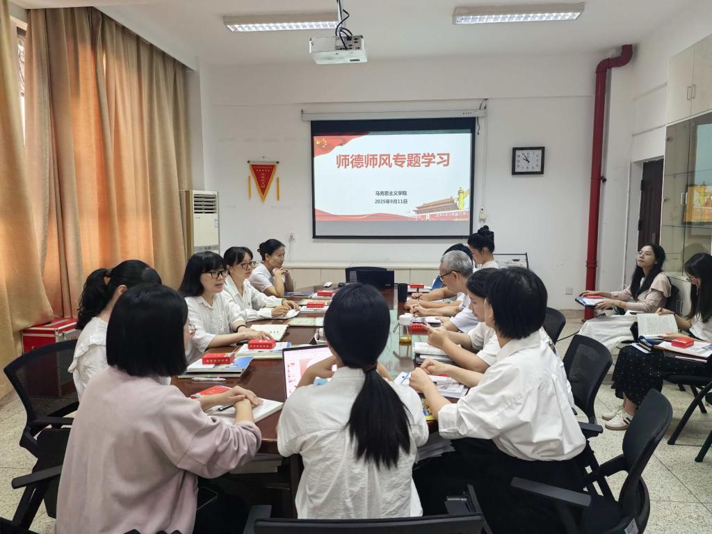 為加強(qiáng)師德師風(fēng)建設(shè),增強(qiáng)教師的立德樹人責(zé)任感與使命感,2025年9月11日,馬克思主義學(xué)院在厚德樓106會議室開展師德師風(fēng)專題學(xué)習(xí)活動?;顒佑神R克思主義學(xué)院院長熊美蘭主持,馬克思主義學(xué)院全體教師出席本次活動。