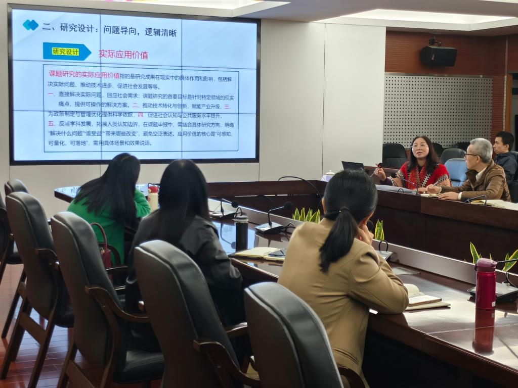 講座中,陳育欽立足多年科研申報(bào)指導(dǎo)經(jīng)驗(yàn)與往年中標(biāo)典型案例,圍繞教育部思政專項(xiàng)課題申報(bào)核心要點(diǎn),從選題、研究設(shè)計(jì)、團(tuán)隊(duì)組建、材料撰寫及關(guān)鍵注意事項(xiàng)五大模塊展開系統(tǒng)講解與深度剖析。在選題環(huán)節(jié),她指出要緊扣中央及教育部最新政策文件、年度思政工作要點(diǎn),精準(zhǔn)把握時(shí)代熱點(diǎn),同時(shí)結(jié)合自身研究基礎(chǔ)找準(zhǔn)差異化切入點(diǎn),聚焦高校思政工作中的“真問題”避免空泛化研究。同時(shí),她結(jié)合申報(bào)書規(guī)范要求,詳細(xì)拆解各部分撰寫技巧。她還特別提醒參會(huì)教師,思政專項(xiàng)課題申報(bào)需嚴(yán)守政治方向,確保研究?jī)?nèi)容符合主流意識(shí)形態(tài),貼合年度評(píng)審熱點(diǎn),要避免“重理論輕實(shí)踐”,強(qiáng)化成果的應(yīng)用價(jià)值與可推廣性,并提前3-6個(gè)月籌備申報(bào)工作,預(yù)留充足修改時(shí)間,邀請(qǐng)同行專家預(yù)評(píng)審以優(yōu)化完善申報(bào)材料。