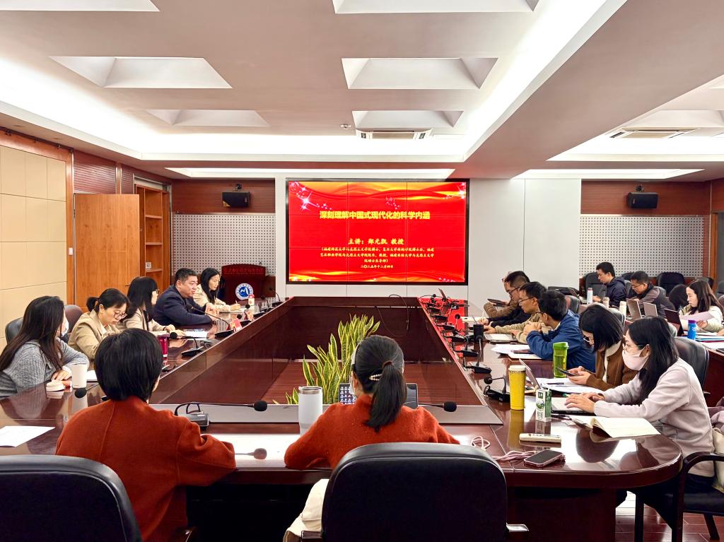 為深入學(xué)習(xí)貫徹黨的二十屆四中全會(huì)精神,幫助廣大師生進(jìn)一步理解中國(guó)式現(xiàn)代化的超越性意義,12月4日,我校特別邀請(qǐng)福建藝術(shù)職業(yè)學(xué)院馬克思主義學(xué)院院長(zhǎng)、福建農(nóng)林大學(xué)碩士生導(dǎo)師鄭元?jiǎng)P教授,開展題為《深刻理解中國(guó)式現(xiàn)代化的科學(xué)內(nèi)涵》的專題講座。講座由馬克思主義學(xué)院院長(zhǎng)熊美蘭主持,馬克思主義學(xué)院全體專兼課教師參加。