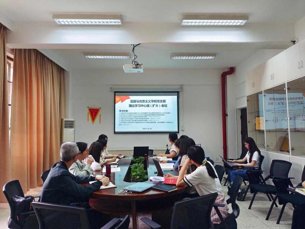 2023年10月19日,直屬馬克思主義學(xué)院黨支部在行政樓107開(kāi)展理論學(xué)習(xí)中心組(擴(kuò)大)會(huì)議。會(huì)議由黨支部書(shū)記熊美蘭主持。
