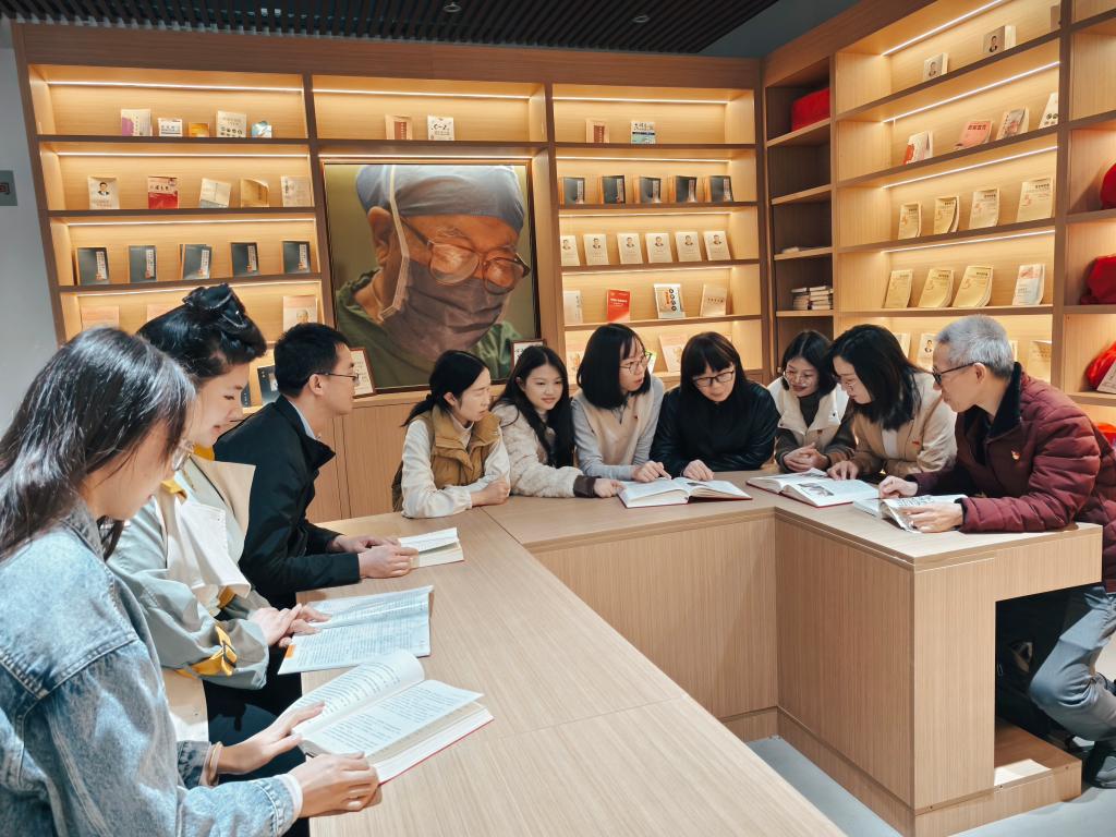 在吳孟超院士館,跟隨講解員腳步,全體黨員依次參觀吳孟超院士先進(jìn)事跡展“勵(lì)志報(bào)國(guó)”“勇攀高峰”“大醫(yī)仁心”“甘為人梯”“回報(bào)鄉(xiāng)梓”等5個(gè)版塊。參觀過程中,黨員們頻頻點(diǎn)頭,對(duì)吳老的高尚品格和崇高精神贊嘆不已,黨員們還分組收集相關(guān)資料,結(jié)合自己任教的課程,研討吳老感人事跡融入課程的著力點(diǎn)、方式和方法。