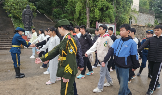 本次活動(dòng)以“大手拉小手”的實(shí)踐形式開(kāi)展,我校八一學(xué)社、國(guó)旗護(hù)衛(wèi)隊(duì)和閩侯荊溪中學(xué)40余名師生齊聚一堂,共同走進(jìn)“行走的思政課”。八一學(xué)社和國(guó)旗護(hù)衛(wèi)隊(duì)成員充分發(fā)揮自身優(yōu)勢(shì)為荊溪中學(xué)護(hù)旗隊(duì)帶來(lái)了專業(yè)的訓(xùn)練指導(dǎo),從軍姿的標(biāo)準(zhǔn)站法,到行軍禮的規(guī)范動(dòng)作,再到走隊(duì)列的節(jié)奏把握和出旗的流程規(guī)范,都進(jìn)行了耐心細(xì)致的講解和示范,他們運(yùn)用豐富的經(jīng)驗(yàn)和專業(yè)的知識(shí),幫助荊溪中學(xué)護(hù)旗隊(duì)成員糾正動(dòng)作偏差,提升整體素質(zhì)和專業(yè)水平。以“實(shí)踐育人”為核心,將愛(ài)國(guó)主義教育融入實(shí)操訓(xùn)練,既發(fā)揮了學(xué)校國(guó)旗護(hù)衛(wèi)隊(duì)的示范引領(lǐng)作用,也搭建了校際思政教育交流平臺(tái)。雙方以國(guó)旗護(hù)衛(wèi)為切入點(diǎn),推動(dòng)思政教育從高校向中小學(xué)延伸,助力形成“上下聯(lián)動(dòng)、資源共享、協(xié)同育人”的思政教育格局。