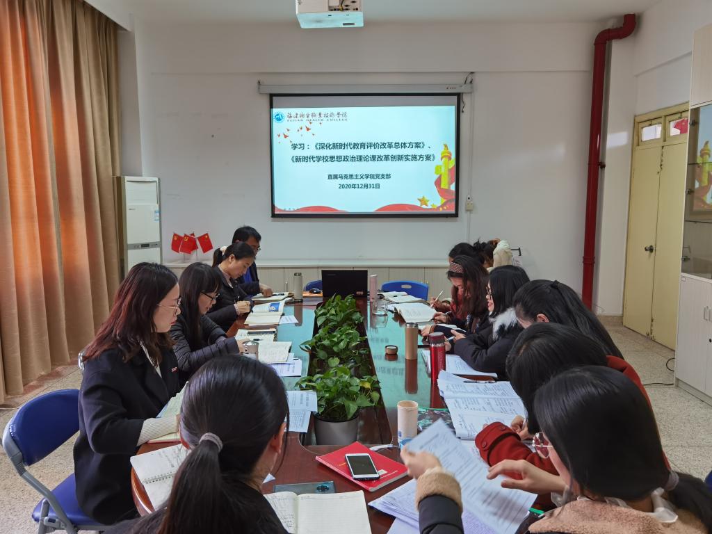 會上,黨支部書記熊美蘭首先將直屬馬克思主義學(xué)院黨支部委員候選人預(yù)備人選初步名單再次提交黨員大會,進(jìn)一步征求黨員意見,全體黨員同志一致同意初步名單。隨后,在直屬馬院黨支部副書記來朋珍的領(lǐng)學(xué)下,大學(xué)一起深入學(xué)習(xí)了《深化新時代教育評價改革總體方案》、《新時代學(xué)校思想政治理論課改革創(chuàng)新實施方案》文件精神。