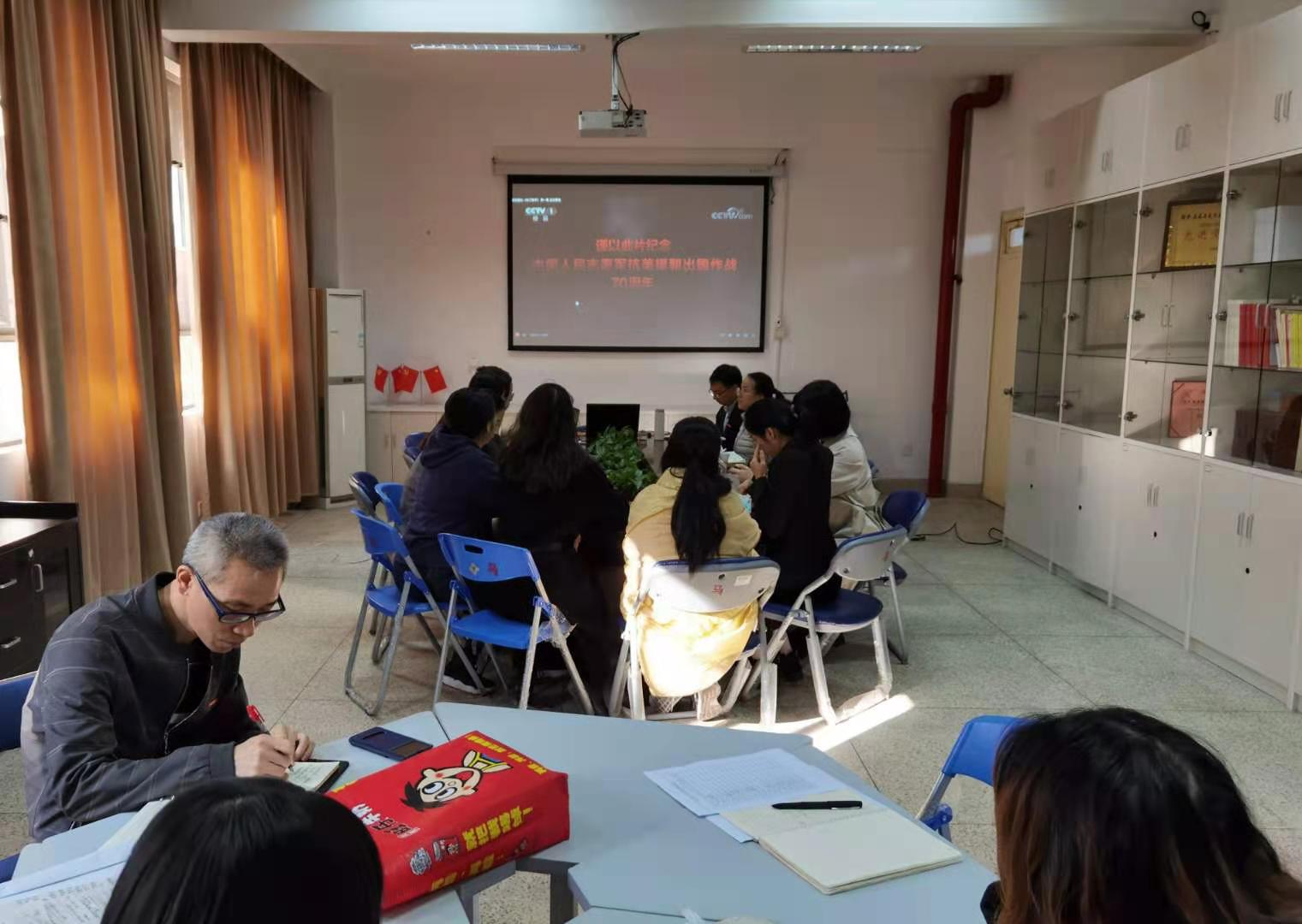 為深入貫徹落實(shí)習(xí)近平總書記在紀(jì)念中國人民志愿軍抗美援朝出國作戰(zhàn)70周年大會(huì)上的重要講話精神,深入開展“四史”學(xué)習(xí)教育,大力弘揚(yáng)偉大的抗美援朝精神,2020年12月3日,直屬馬克思主義學(xué)院黨支部開展主題黨日活動(dòng),組織支部全體教師黨員在行政樓107會(huì)議室集中觀看學(xué)習(xí)了專題紀(jì)錄片《為了和平》。